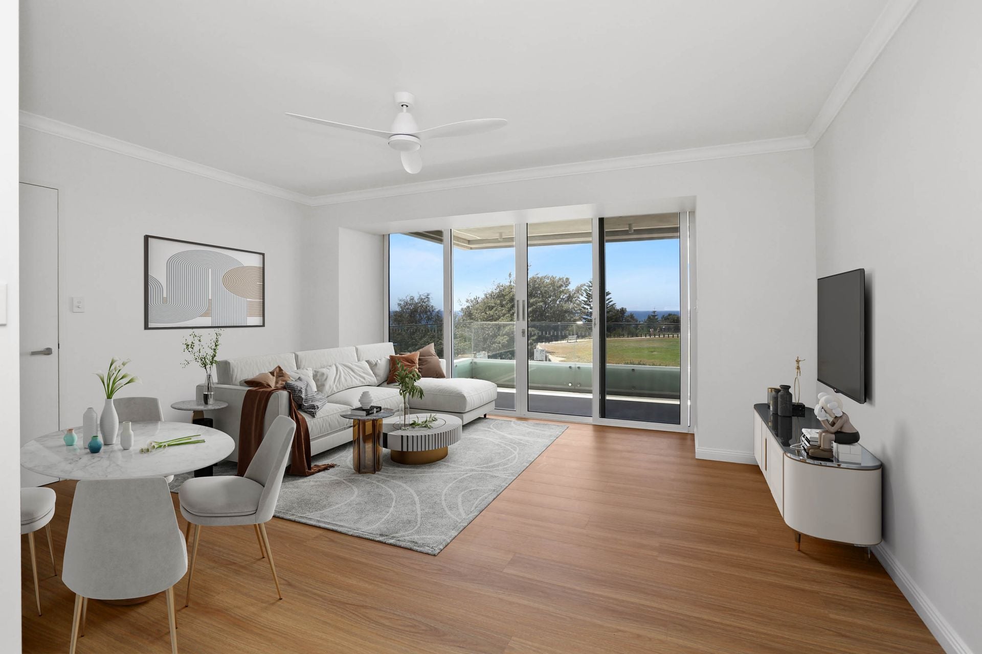 Commanding uninterrupted ocean views, directly across from Marks Park, this newly renovated modern 2 bedroom apartment is found on the first floor of a small security building of 6.