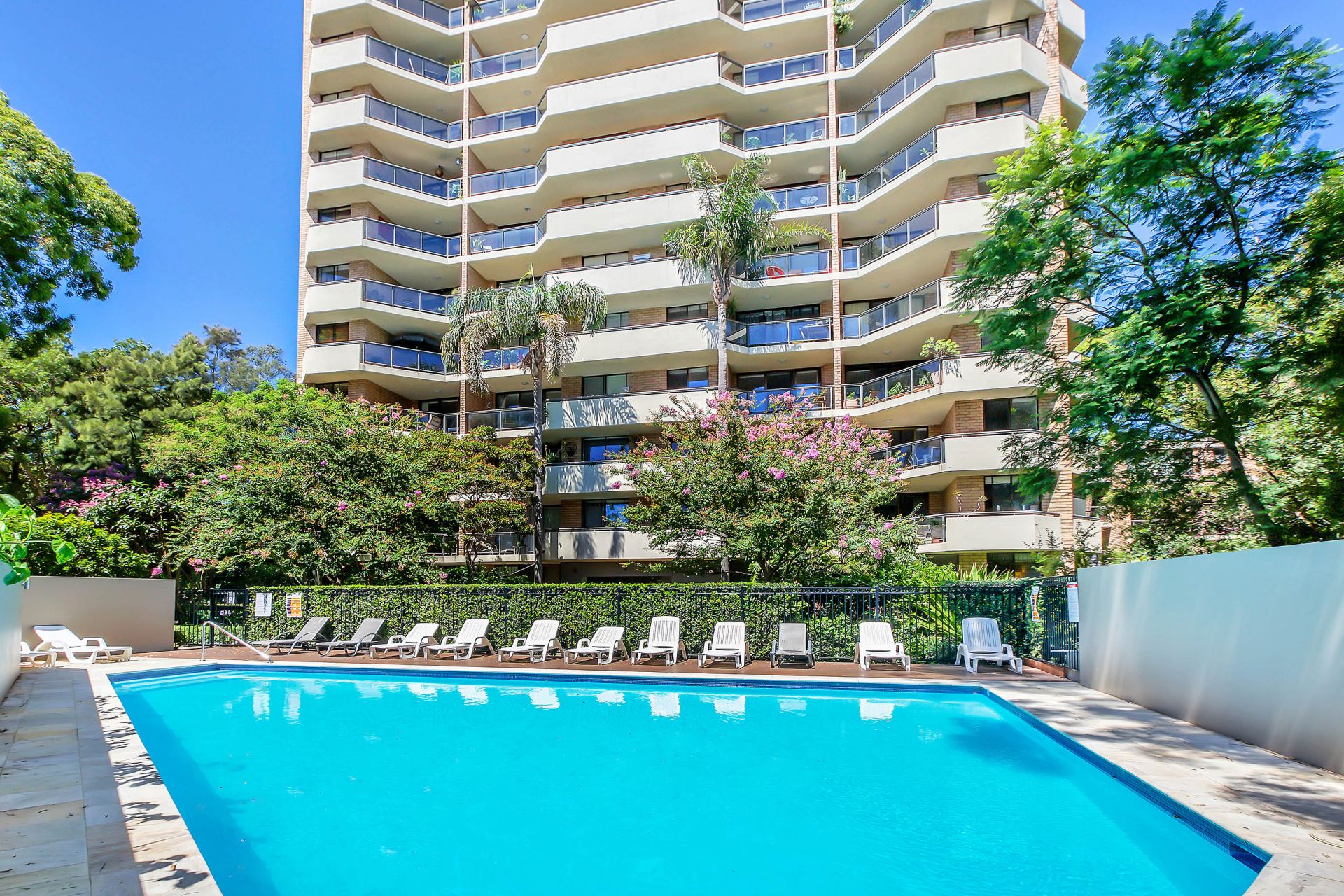 - Complex pool, lush gardens, active on-site building manager